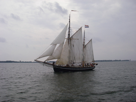 Afgelopen weekende het laatste tochtje gevaren met de RumRegatta klub. 'Kiel Marketing' had een nieuwe Race georganiseerd voor "Traditionsschiffe". Een prachtige dag op het fjord gezeild. Drie maal raden wie er won... de Stella Maris. Tweede werd de Albertha, en wij zijn als derde geeindigd. Precies dezelfde volgorde als bij de RumRegatta.De wedstrijd was nog niet voorbij of het weer sloeg om. Zondag de hele dag regen. Echt herfst, de eerste kruinen zijn bruin, de kastanjes liggen op straat. Vandaag bewolkt en fris. Met Gijs aan boord zijn de weergoden ons steeds gunstig gezind. Vandaag is het droog, en de wind is gedraaid naar NO, en morgen als we de Elbe op gaan zou hij ook nog in het NO zitten, om vervolgens verder naar het oosten draaien. Dat betekend voor ons: voor de wind richting onze bestemming Wilhelmshaven. 18-09-2010 Kappeln
