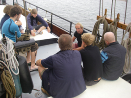 Tijdens de afgelopen 2½ weken is er natuurlijk van alles gebeurd, maar dat waren dan ook weer niet van die dingen waarvan je zegt "dat moet in het logboek..."We hebben weer een grote groep uit Beieren gehad. Net als vorig jaar samen met de Swaensborgh gevaren. Eerst kregen zij problemen met de vuilwatertank. Had ik de hele groep aan boord genomen om te zwemmen..., het leek wel een robbenbankje. Gelukkig was het probleem redelijk snel te verhelpen, en konden we de reis voortzetten.