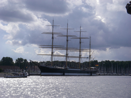 De individuele tochten beginnen goed te lopen. Met een vol schip (16 gasten) zijn we maandag vertrokken vanuit Rostock voor een 4-daagse reis naar Stralsund. Het was nog even puzzelen om de hutten goed in te delen, maar dat lukte prima dankzij de inschikkelijkheid van een aantal gasten, en gecombineerd met het mooie weer was het wederom een prachtige tocht. De eerste nacht gingen we voor anker bij Darss, en werd er uitgebreid gezwommen. Dinsdag zeilden we met een rustig windje naar Kloster op Hiddensee; onderweg kwamen we de 'Marieje' nog tegen. Woensdag regende het behoorlijk, en was er een keuze-programma: een dagtocht zeilen (dat koos de meerderheid) of wandelen en fietsen op Hiddensee. Nat werden we allemaal, maar 's middags was het al weer droog en zonnig. Op donderdag prachtig gezeild naar Stralsund, waar alle gasten (behalve Truus) van boord gingen. Dus ook afscheid na 2 weken van Maartje en Kirsten. Dank voor jullie gezelschap en alle hulp!