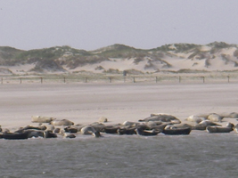 Maandag 25 aprilVanaf Norddeich eerst naar Norderney. De volgende dag leek ideaal om droog te vallen. Het weer was weer schitterend (zon, maar een beetje heiig) maar helaas woei het hard waardoor het toch wat fris was. Het droogvallen was geen probleem; de bodemgesteldheid wel. En, bij het opkomende water hadden we wel wat moeite om van de lager wal van het geultje af te komen. Die middag nog naar Langeoog doorgevaren.