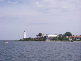 De weektocht die zo stormachtig begon verliep verder met redelijk weer. Aan het eind met prachtig weer voor anker bij Kalkgrund, met een licht oosten windje (Bf 1-2) vlak voor het strand. En dan de laatste dagen flauwte...Zo te zien wordt in Holtenau nog steeds graag in het vuurtorentje in het huwelijksbootje gestapt.