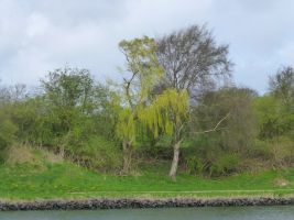Na Cuxhaven zijn we eerst nog even naar Glückstadt gevaren. We waren immers een beetje vroeg. Dat had ik beter kunnen laten, want de volgende dag woei het echt stevig, en konden we met flinke golven en een stevige stroom een uurtje voor de sluis 'dobberen'...Vervolgens hebben we van dinsdag 8 op woendag 9 april in het Gieselau Kanal overnacht. Het kanaal was dit jaar echt veel groener dan anders.