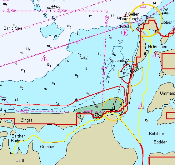 Na een verfrissende douche in Barth (speciaal voor ons door de Hafenkapitän opengemaakt) een opbouwend stukje in het gastenboek geschreven waarbij we voor het eerst de scheepsstempel hebben gebruikt. Daarna varen we opnieuw over de mooie Barther Bodden, maar nu op de motor. Het is grijs vandaag, maar wel een stuk zachter. Onduidelijk of het weer gaat omslaan; we zullen nu echt de weerfaxen moeten gaan bestuderen. De kluten jagen we op dezelfde plaats als gisteren op, en het lukt om ze te fotograferen. Op de kop bij Bock zien we dan ook nog 2 prachtige zeearenden, dus wat vogels betreft is het een top-dag. We varen door een smalle geul naar Kloster, het noordelijkste dorp op Hiddensee; daar hebben we onze ligplaats op de kaart geprikt. Helaas kunnen we daar niet terecht, omdat er nieuwe damwanden worden aangebracht aan de toch al kleine kade. We moeten dus een paar mijl terug naar Vitte, waar wel ruim plek is. Maar toch, in het hoogseizoen zouden we waarschijnlijk in deze omgeving nauwelijks terecht kunnen, tenzij ankerend.